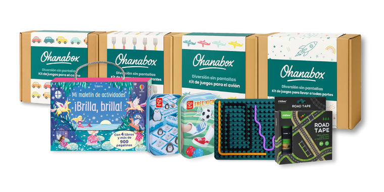 Ohanabox son kits de juegos diseñado para niños que ofrecen diversión sin pantallas en diferentes situaciones (restaurantes, viajes en coche, avión, etc.).